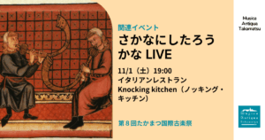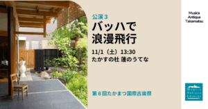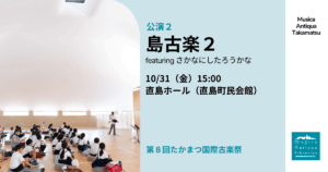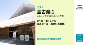 毎年、さまざまな楽器が登場する直島ホールでの「島古楽」。今年は古楽器バンド「さかなにしたろうかな」を迎え、ルネサンス〜バロック時代の珍しい管楽器やギターのアンサンブルをお聴きいただきます。折しも、瀬戸内国際芸術祭2025 秋会期の開催中。「アートの島」を満喫してください!